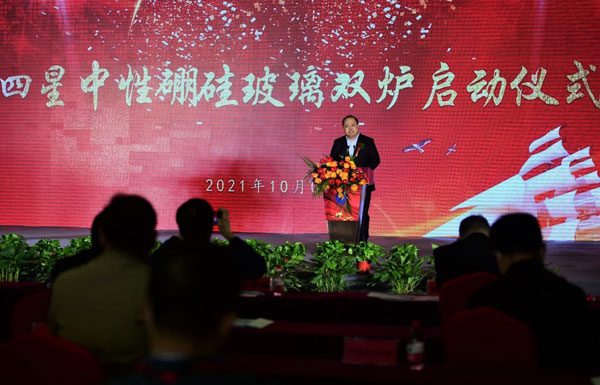 中國生化制藥工業(yè)協(xié)會常務副會長胡文言在致辭中講到,四星玻璃作為全球大規(guī)模生產中性硼硅玻璃能量產的企業(yè)少數(shù)幾家大概是三家四家企業(yè)之一,掌握了獨到的技術,是我們國家的幸運,是人民的需求。 2021年工信部已經確定了滄州四星玻璃是我們國家級的專精特新小巨人企業(yè),四星玻璃為疫苗生產貢獻了數(shù)億支疫苗瓶,成為了民族脊梁,是防治新冠疫情的功臣,是我們的驕傲。滄州四星這個5號,6號窯爐雙爐啟動,也是解決眼門前的這個巨大的需求,為這個需求做出了重大的貢獻。